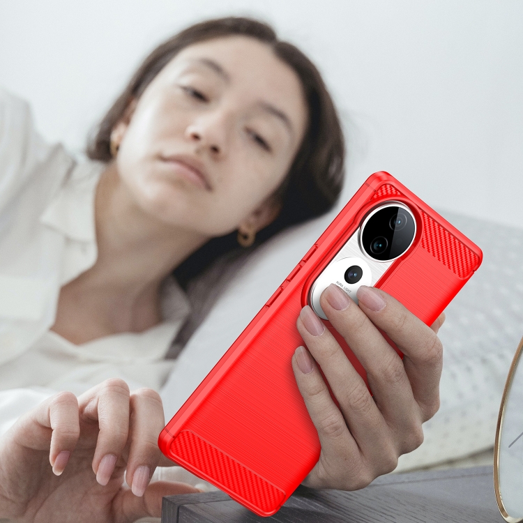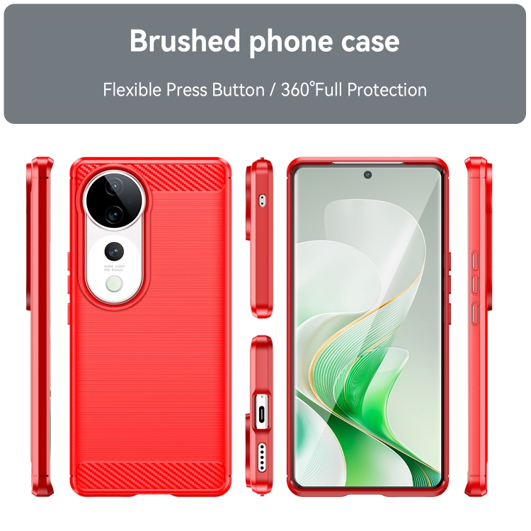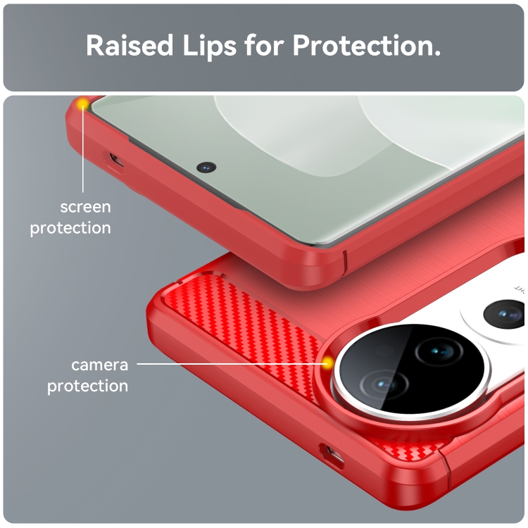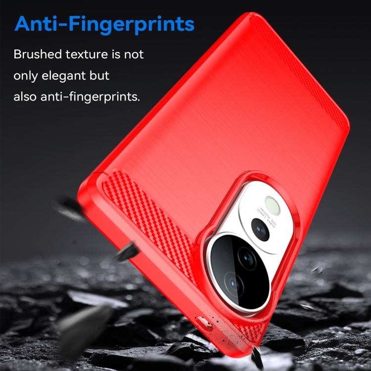 Para Vivo V40 5G Funda de Teléfono TPU de Fibra de Carbono con Textura Cepillada (Rojo)
