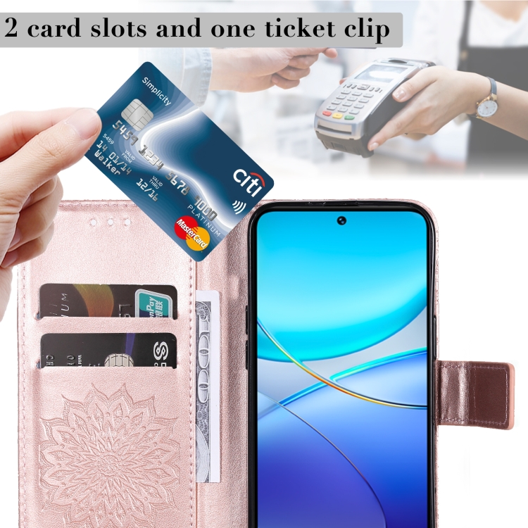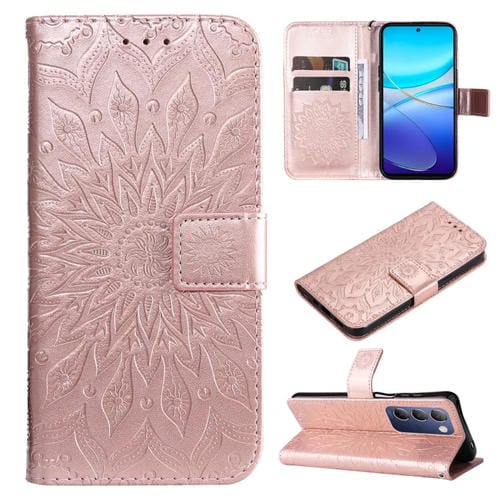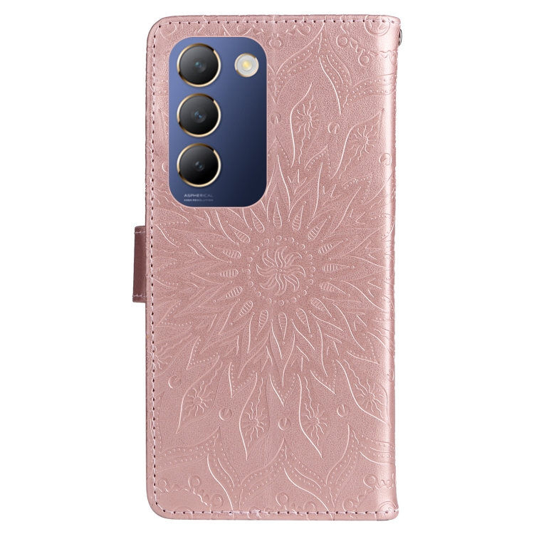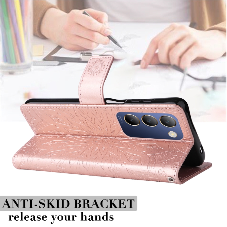 Para Vivo V40 Se 5G / Y100 Idn Funda para Teléfono de Cuero con Tapa con Patrón de Girasol En Relieve (Oro Rosa)