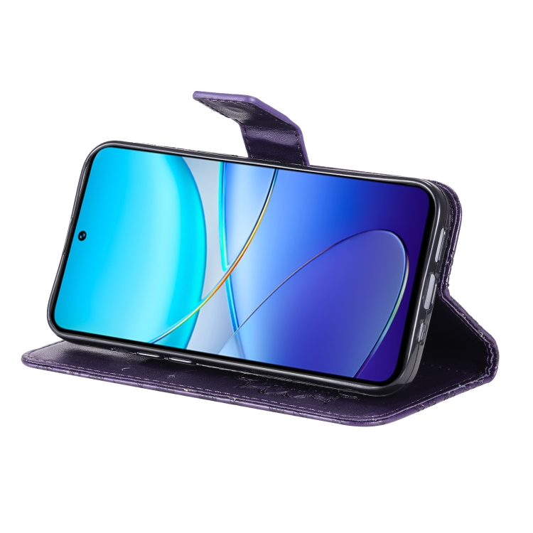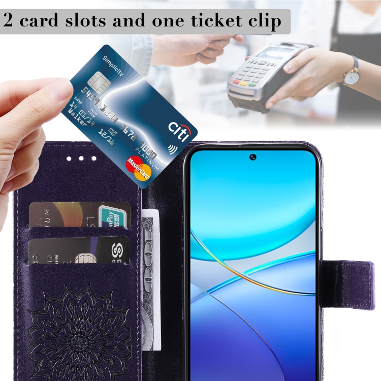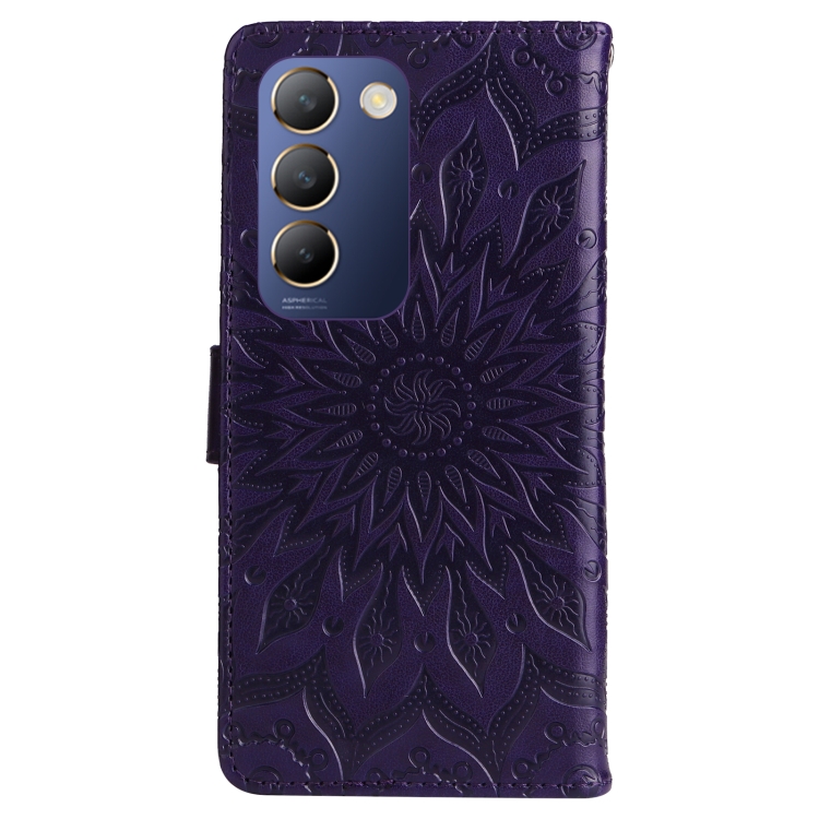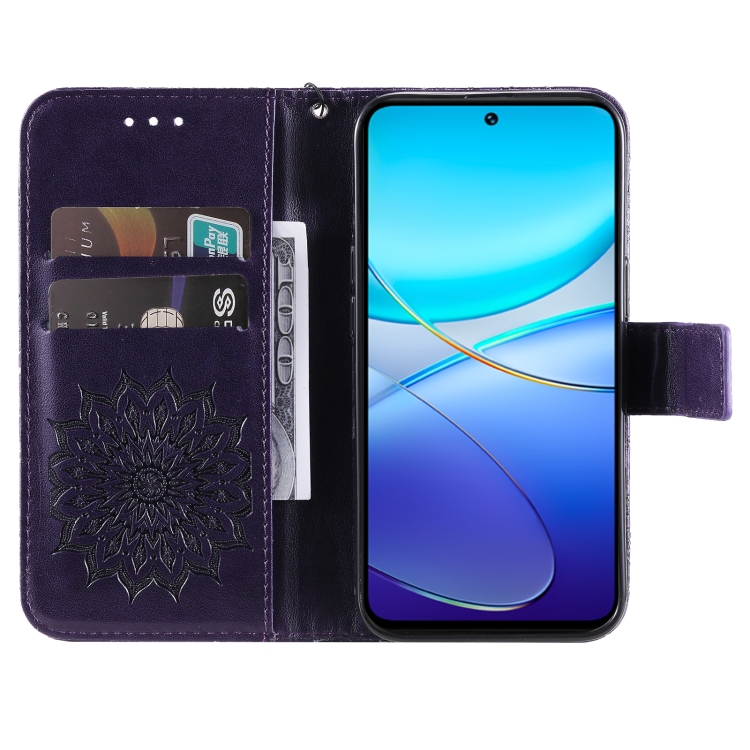 Para Vivo V40 Se 5G / Y100 Idn Funda para Teléfono de Cuero con Tapa con Patrón de Girasol En Relieve (Púrpura)