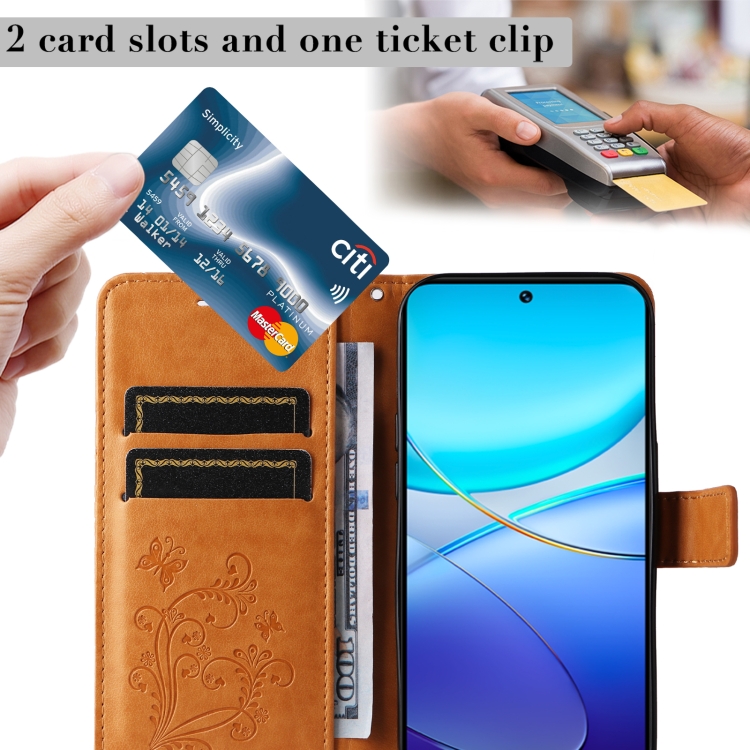 Para Vivo V40 Se 5G / Y100 Idn Funda para Teléfono de Cuero con Tapa En Relieve con Mariposa 3D (Amarillo)