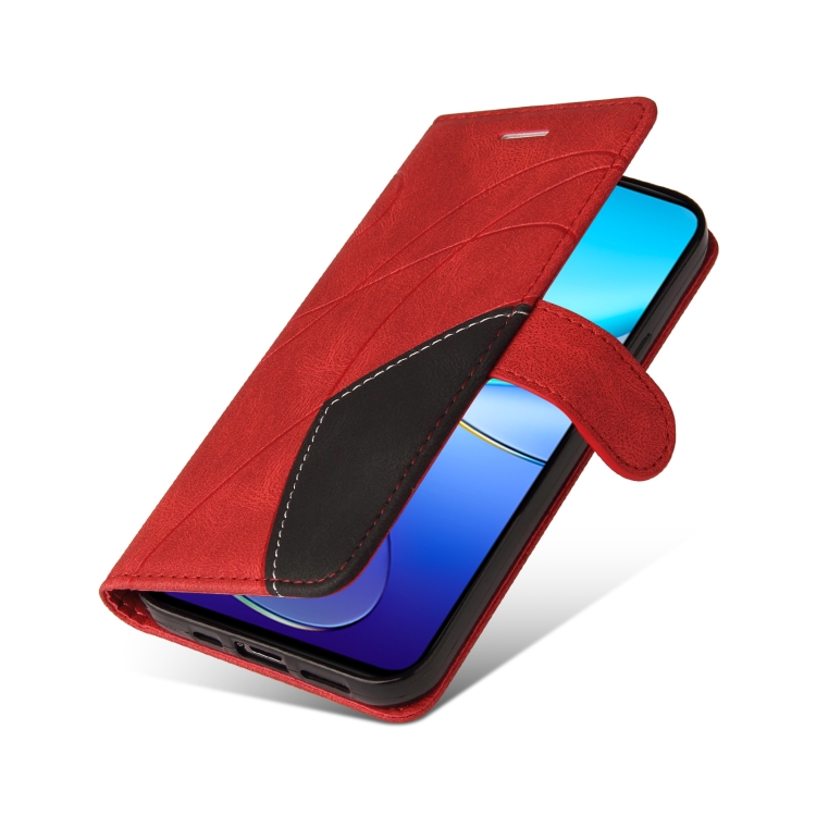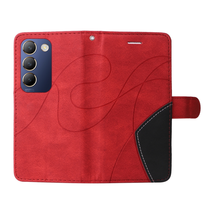 Para Vivo V40 Se 5G / Y100 Idn Funda para Teléfono de Cuero con Tapa y Empalme de Dos Colores (Rojo)