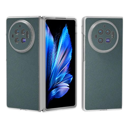 Para Vivo X Fold3 Abeel Funda para Teléfono con Borde Transparente Esmerilado Elegante de Cuero Genuino (Verde)