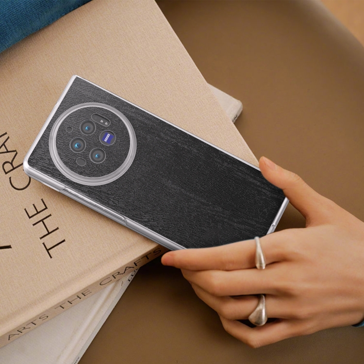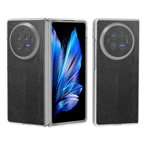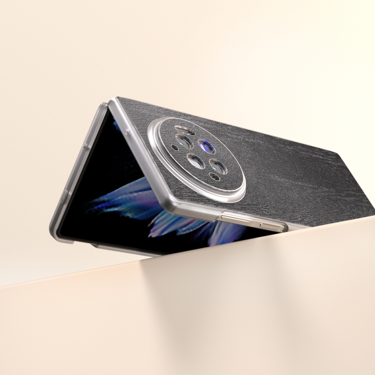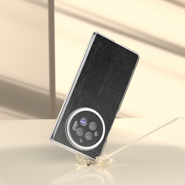 Para Vivo X Fold3 Caja de Teléfono de Pu con Textura de Madera con Bisagra de Marco Transparente Esmerilado (Negro)