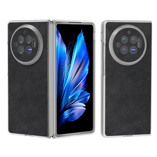 Para Vivo X Fold3 Funda para Teléfono con Borde Transparente Esmerilado de Cuero Pu (Negro)