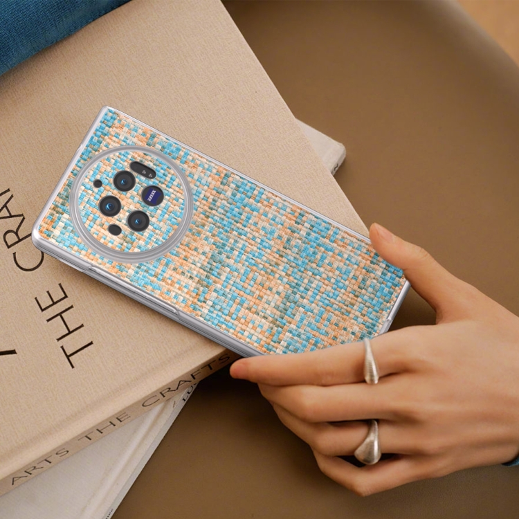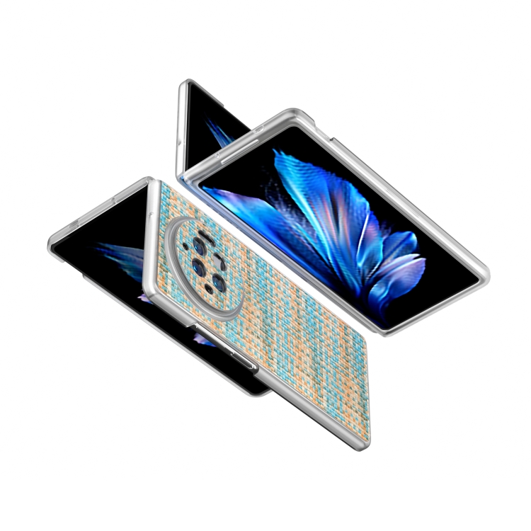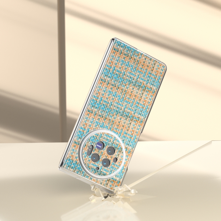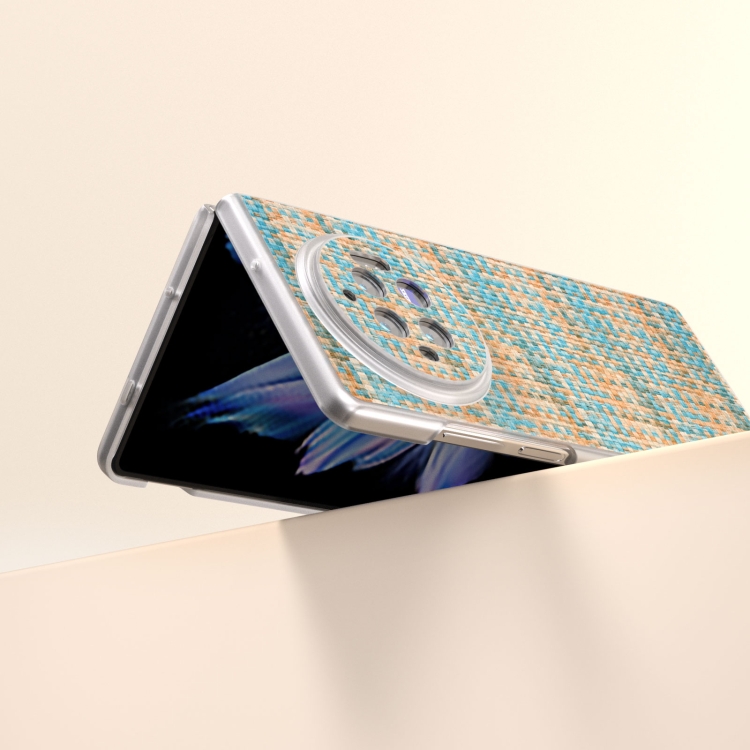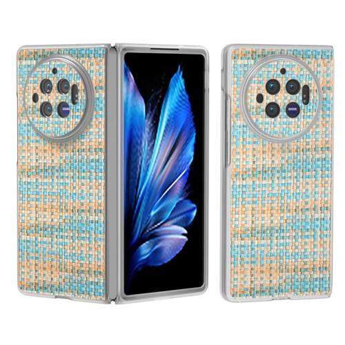 Para Vivo X Fold3 Funda para Teléfono de Pu con Marco Translúcido Esmerilado con Textura Rómbica Colorida (Azul)