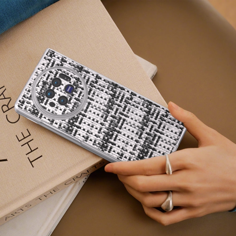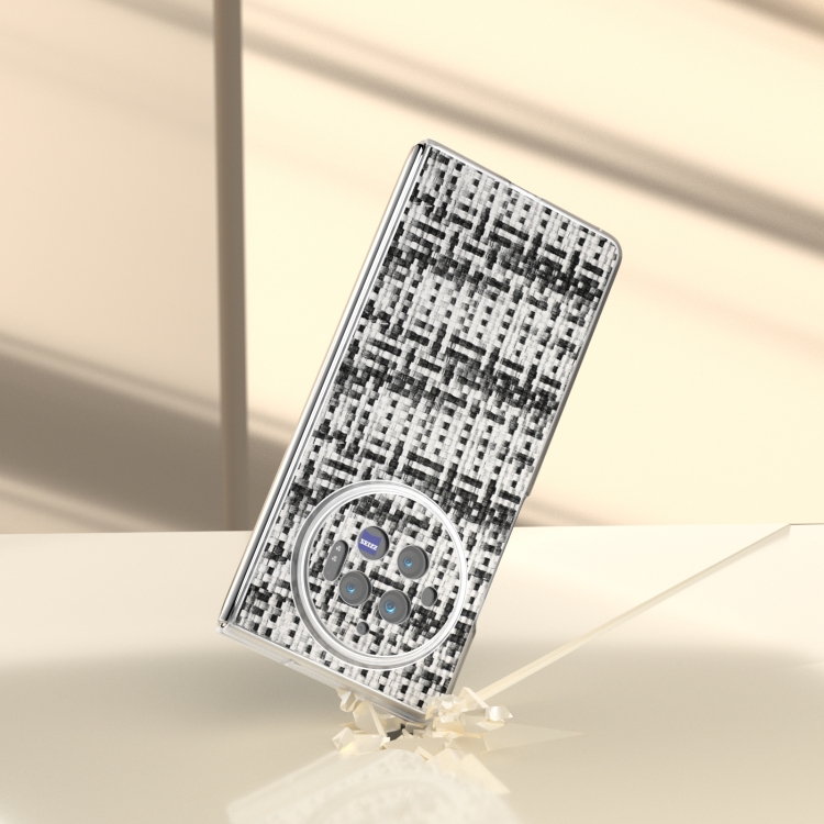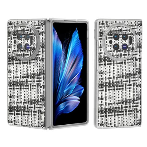 Para Vivo X Fold3 Funda para Teléfono de Pu con Marco Translúcido Esmerilado con Textura Rómbica Colorida (Blanco Negro)
