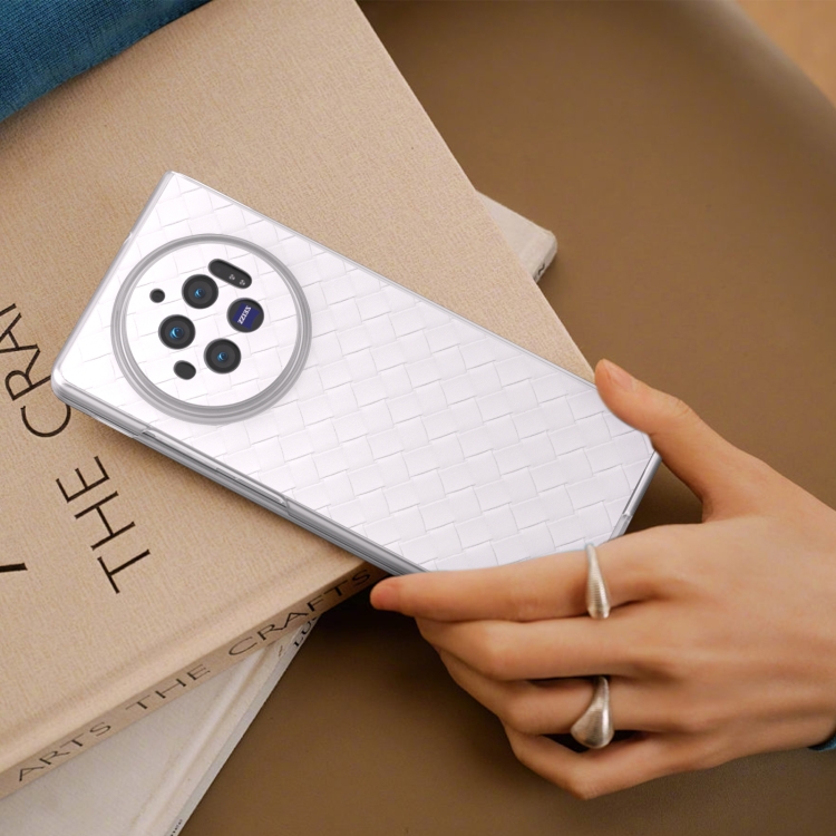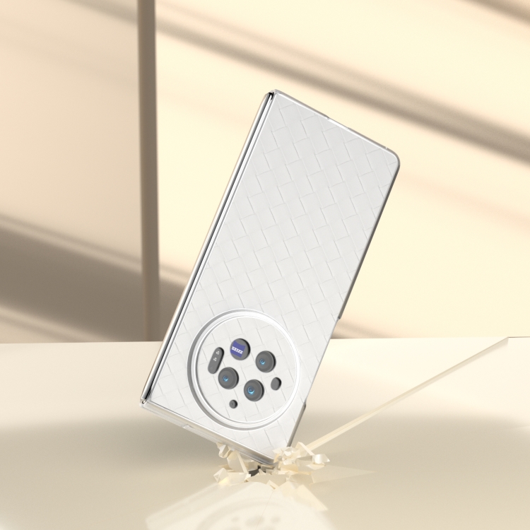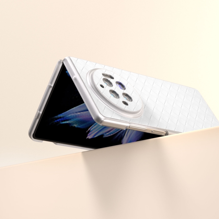 Para Vivo X Fold3 Funda para Teléfono de Pu con Marco Translúcido Esmerilado con Textura Tejida (Blanco)