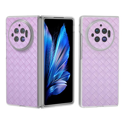 Para Vivo X Fold3 Funda para Teléfono de Pu con Marco Translúcido Esmerilado con Textura Tejida (Púrpura)