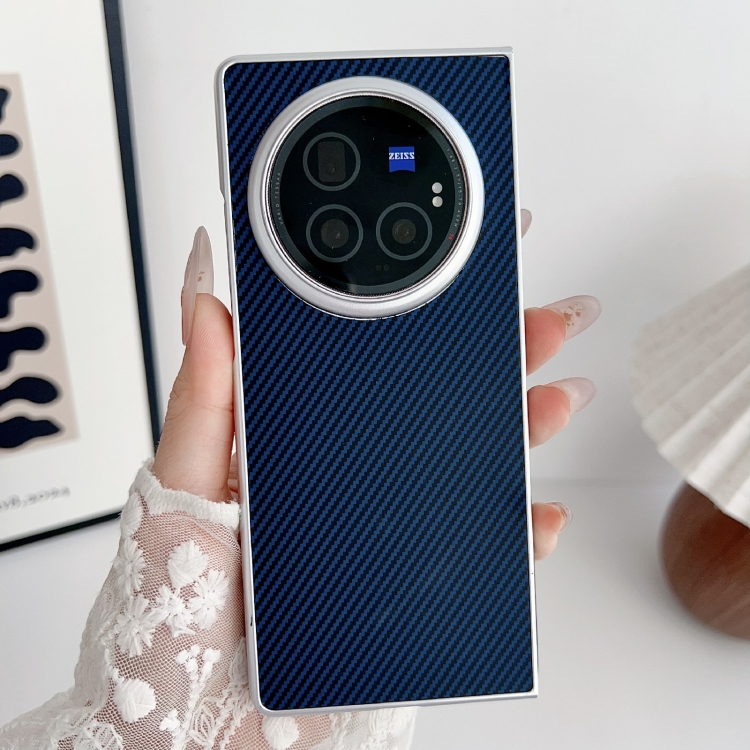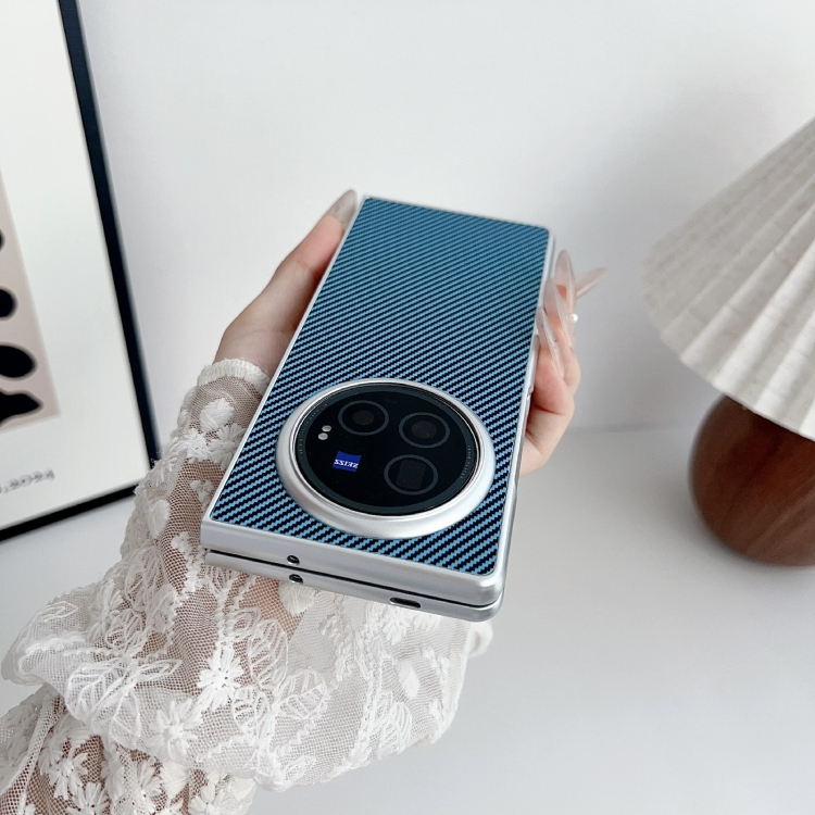 Para Vivo X Fold3 Kevlar Funda para Teléfono Ultrafina a Prueba de Golpes de Fibra de Carbono (Azul Oscuro)