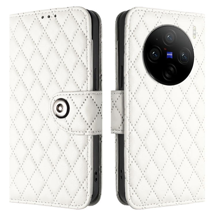 Para Vivo X100 Pro Funda de Cuero con Tapa con Textura Rómbica y Cordón (Blanco)