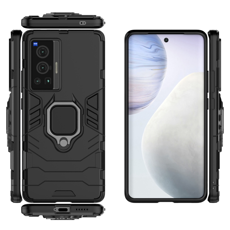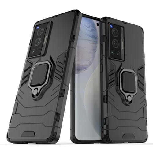 Para Vivo X70 Pro a Prueba de Golpes PC + Funda Protectora TPU con Soporte de Anillo Magnético (Negro)