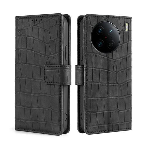 Para Vivo X90 Pro 5G Skin Feel Cocodrilo Cierre Magnético Funda de Cuero para Teléfono (Negro)