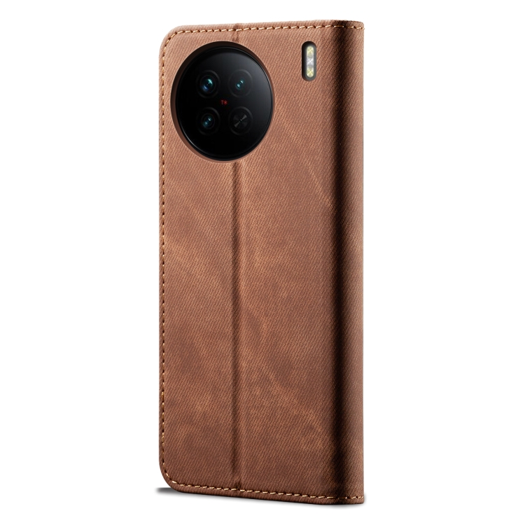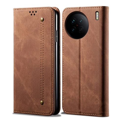 Para Vivo X90 Pro Funda de Cuero con Textura Vaquera para Teléfono (Marrón)