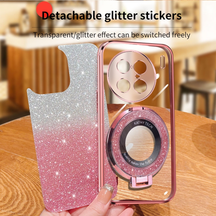 Para Vivo X90 Pro + Funda para Teléfono de TPU con Soporte Redondo y Brillo Degradado Plateado (Rosa)