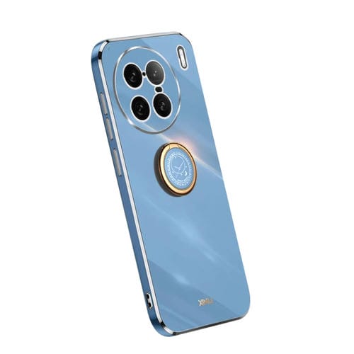 Para Vivo X90 Pro + Xinli Straight Edge Electroplate TPU Funda para Teléfono con Anillo (Azul Celestial)