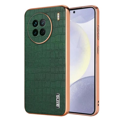 Para Vivo X90 / X90S Azns Estuche para Teléfono de Cobertura Total con Textura de Cocodrilo y Marco Galvanizado (Verde)