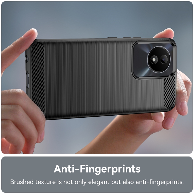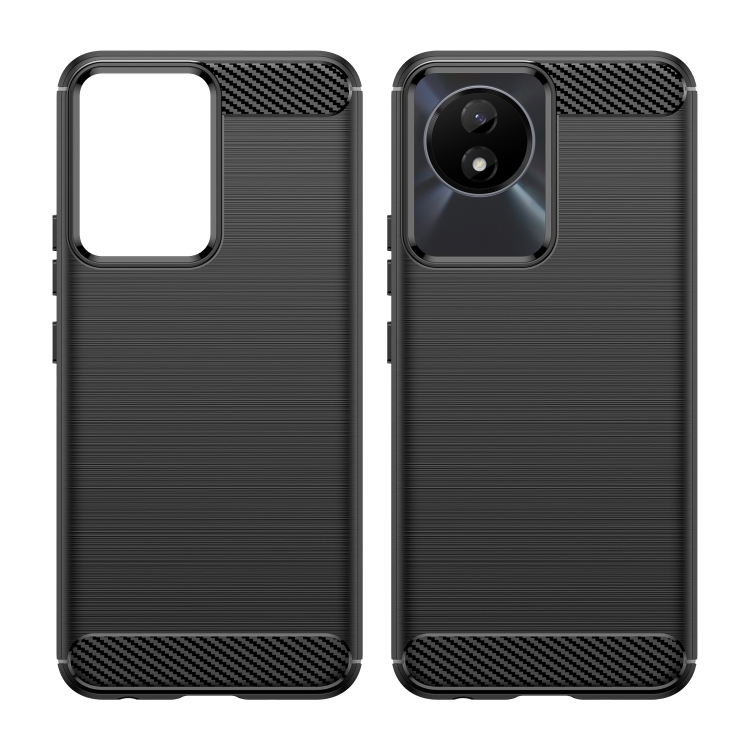 Para Vivo Y02 4G Caja del Teléfono TPU de Fibra de Carbono con Textura Cepillada (Negro)