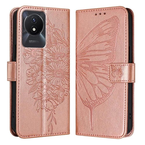 Para Vivo Y02 / Y02A / Y02T / Y11 2023 Funda para Teléfono de Cuero con Mariposa En Relieve (Oro Rosa)