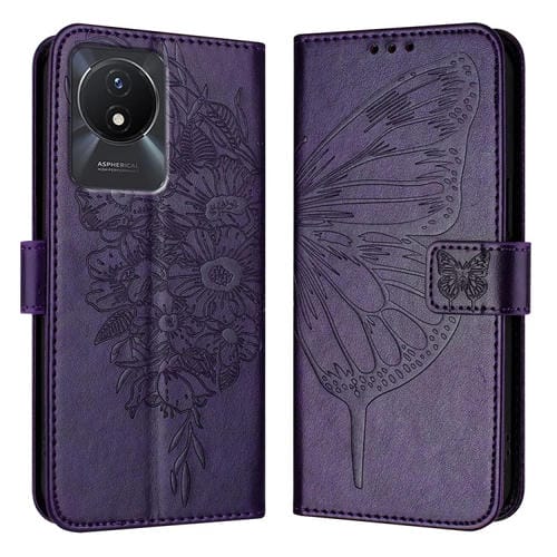 Para Vivo Y02 / Y02A / Y02T / Y11 2023 Funda para Teléfono de Cuero con Mariposa En Relieve (Púrpura Oscuro)