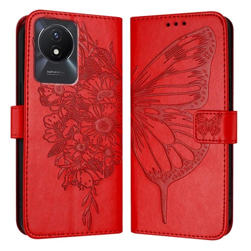 Para Vivo Y02 / Y02A / Y02T / Y11 2023 Funda para Teléfono de Cuero con Mariposa En Relieve (Rojo)