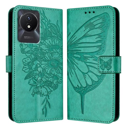 Para Vivo Y02 / Y02A / Y02T / Y11 2023 Funda para Teléfono de Cuero con Mariposa En Relieve (Verde)
