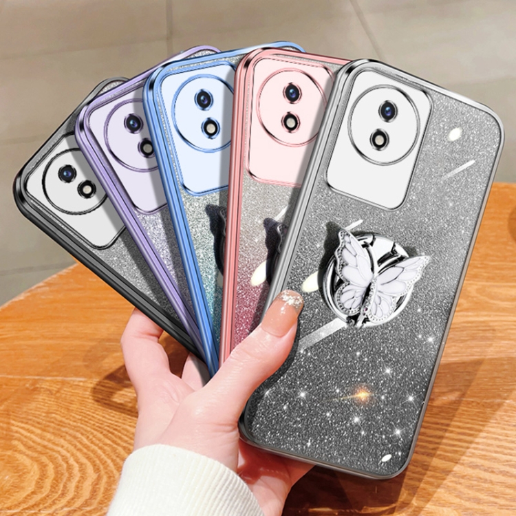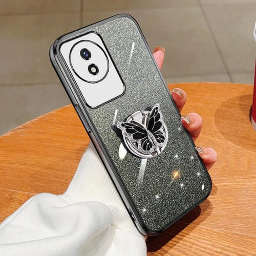 Para Vivo Y02 / Y11 2023 Estuche para Teléfono de TPU con Soporte de Mariposa con Brillo Degradado Plateado (Negro)