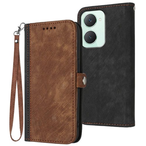 Para Vivo Y03 4G Global Hebilla Lateral Doble Pliegue Correa de Mano Funda de Cuero para Teléfono (Marrón)