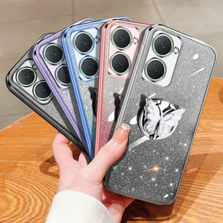 Para Vivo Y03 Funda para Teléfono de TPU con Soporte de Mariposa con Brillo Degradado Plateado (Plata)