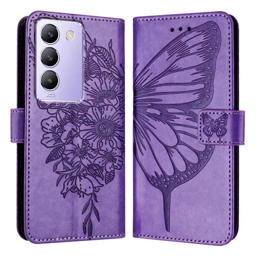 Para Vivo Y100 5G Idn / Y200E 5G Funda para Teléfono de Cuero con Mariposa En Relieve Global (Púrpura Claro)