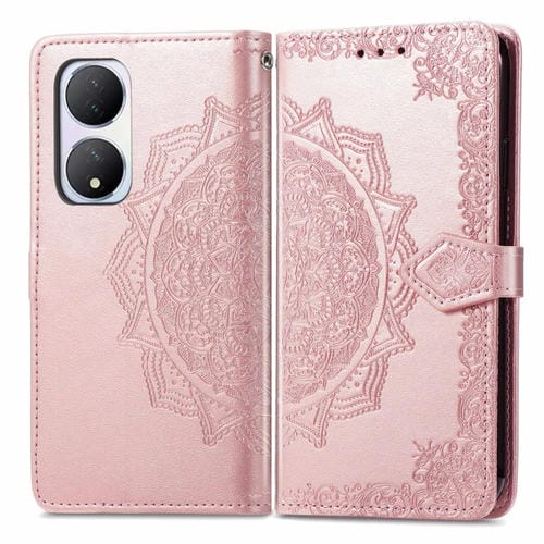 Para Vivo Y100 Idn Mandala Flower Funda de Cuero con Relieve para Teléfono (Oro Rosa)