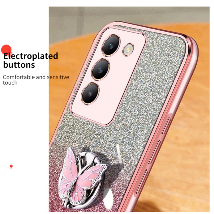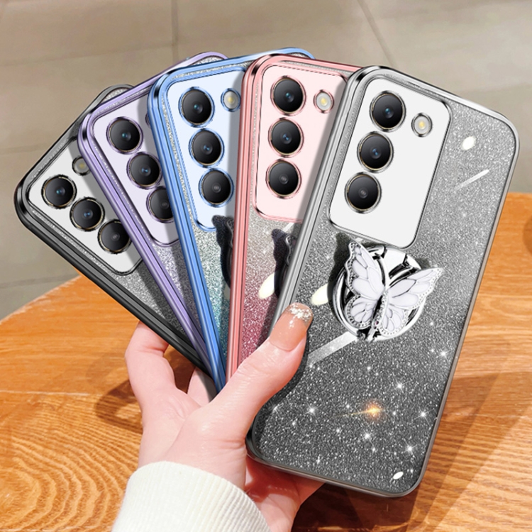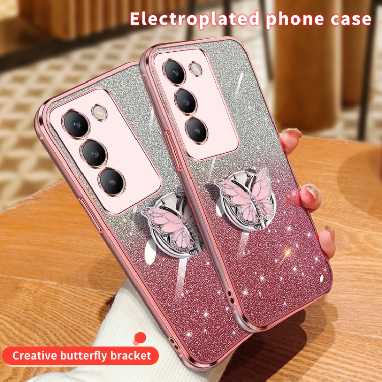 Para Vivo Y100 Idn Plateado Gradiente Brillo Mariposa Titular TPU Caja del Teléfono (Plata)