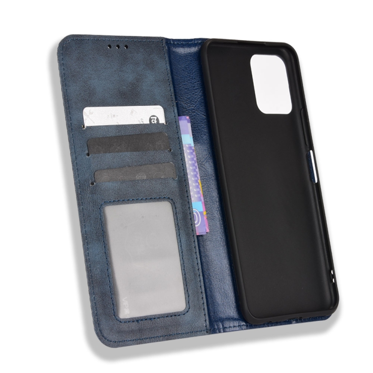 Para Vivo Y15S 2021 / Y15A Caja de Cuero de Cuero de Textura Retro Textura (Azul)