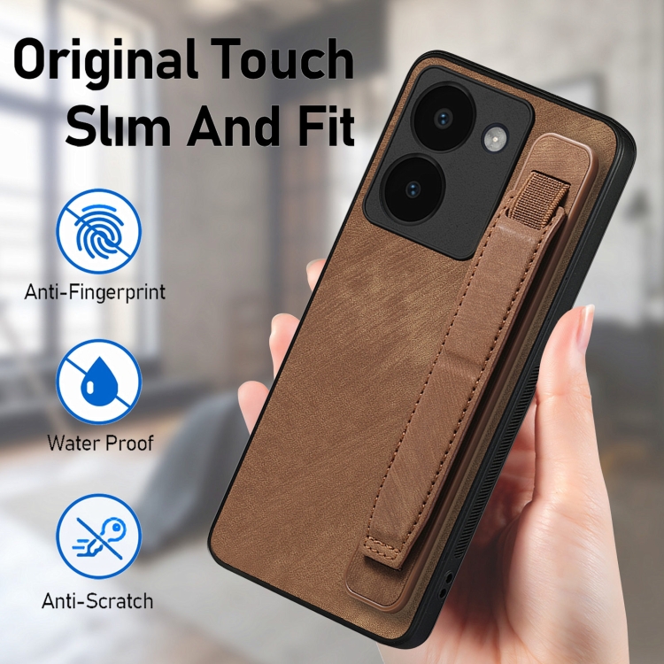 Para Vivo Y15S / Y10 Funda Trasera de Cuero con Soporte para Pulsera Retro (Marrón)