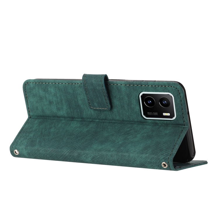 Para Vivo Y15S / Y15A / Y01 Skin Feel Stripe Pattern Funda de Cuero para Teléfono con Cordón (Verde)