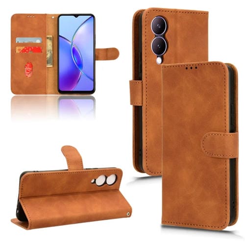 Para Vivo Y17S 4G Skin Feel Funda de Cuero con Tapa Magnética para Teléfono (Marrón)