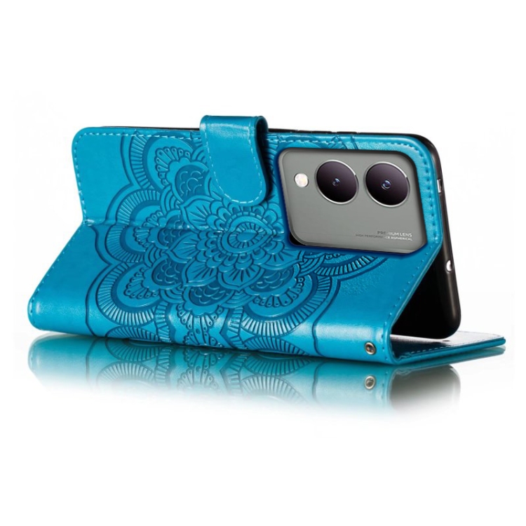 Para Vivo Y17S Sun Mandala Funda de Cuero para Teléfono con Patrón En Relieve (Azul)