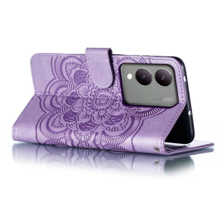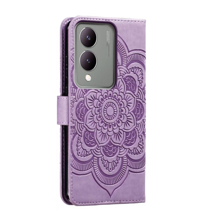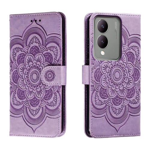 Para Vivo Y17S Sun Mandala Funda de Cuero para Teléfono con Patrón En Relieve (Púrpura)