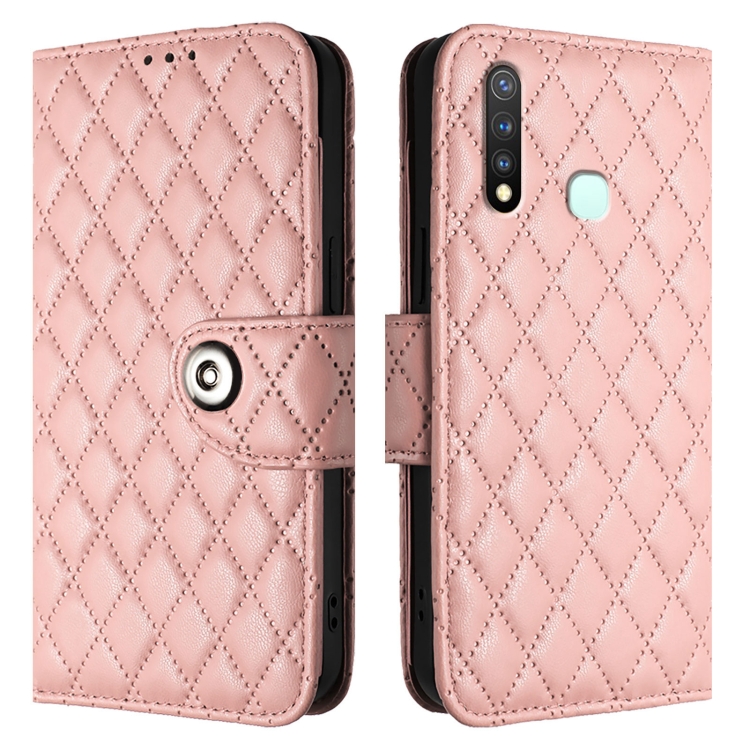 Para Vivo Y19 / U3 / Y5S / Z5I / U20 Funda para Teléfono con Tapa de Cuero con Textura Rómbica y Cordón (Rosa Coral)