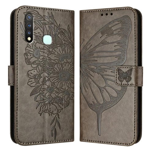 Para Vivo Y19/Y5S/U3/U20/Z5I Funda para Teléfono de Cuero con Mariposa En Relieve (Gris)
