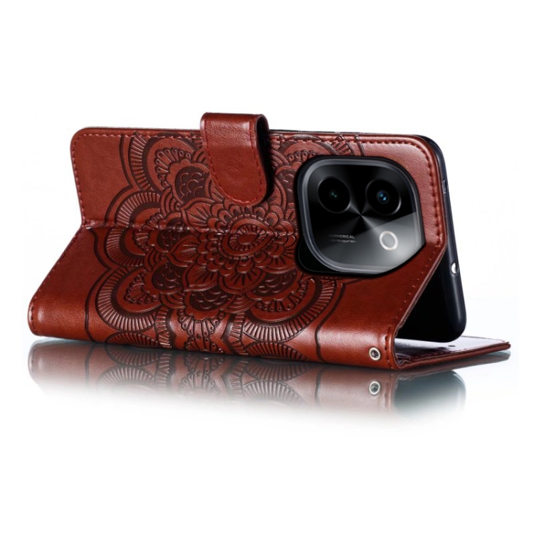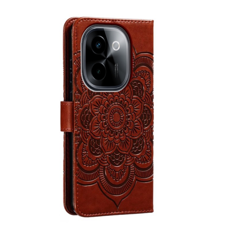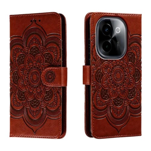Para Vivo Y200 5G Sun Mandala Funda de Cuero para Teléfono con Patrón En Relieve (Marrón)