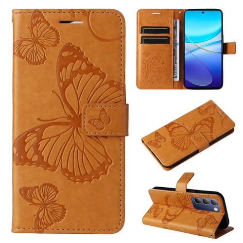 Para Vivo Y200E 5G Global / V30 Lite India Funda para Teléfono de Cuero con Tapa En Relieve con Mariposa 3D (Amarillo)