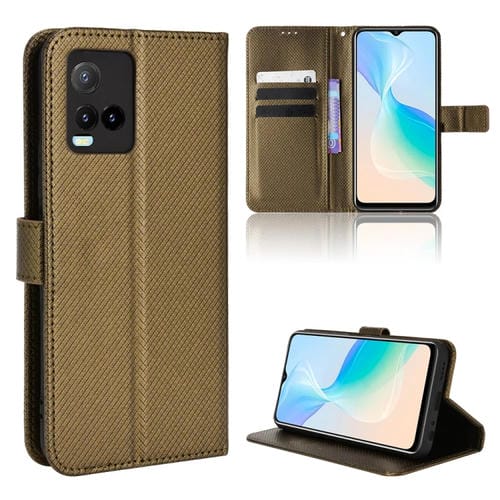 Para Vivo Y21 2021 / Y21S Funda de Cuero con Textura de Diamante para Teléfono (Marrón)