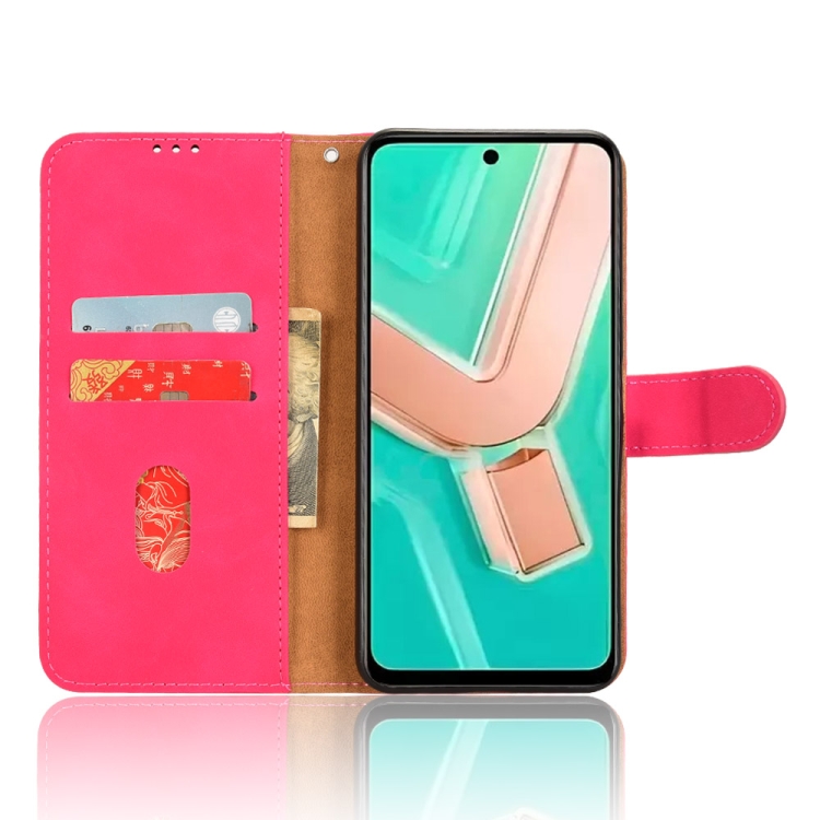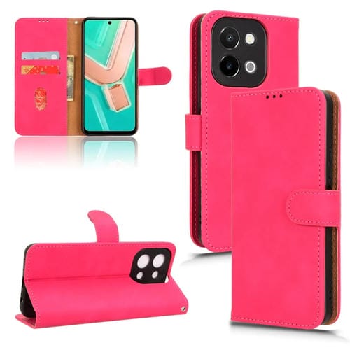 Para Vivo Y28 4G Skin Feel Funda de Cuero con Tapa Magnética para Teléfono (Rojo Rosa)