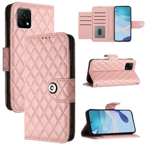 Para Vivo Y31S 5G / Y72 5G India Funda para Teléfono con Tapa de Cuero con Textura Rómbica y Cordón (Rosa Coral)