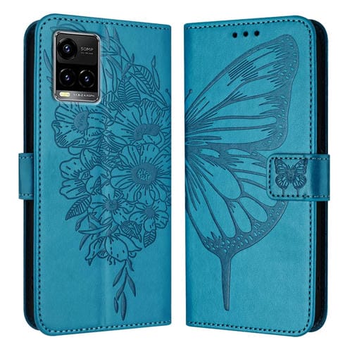 Para Vivo Y33S 4G Global / Y21 2021 / Y21S Funda para Teléfono de Cuero con Mariposa En Relieve (Azul)