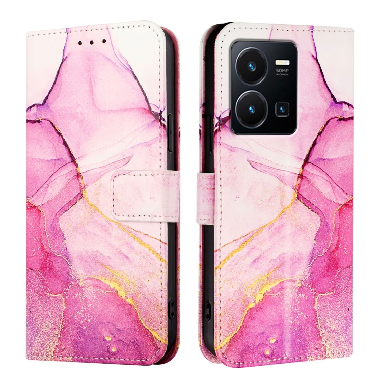 Para Vivo Y35 4G / Y22S 4G / Y22 4G Global Pt003 Funda de Cuero con Tapa con Patrón de Mármol (Oro Rosa Púrpura)
