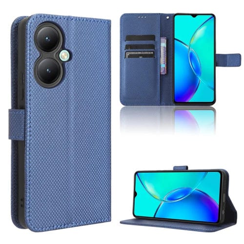 Para Vivo Y35 + Caja de Teléfono de Cuero con Textura de Diamante (Azul)