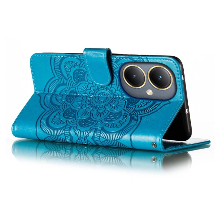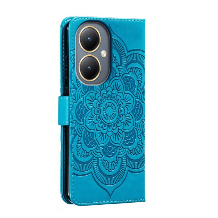 Para Vivo Y35M + Sun Mandala Funda de Cuero para Teléfono con Patrón En Relieve (Azul)