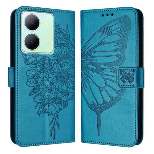 Para Vivo Y36 4G / Y36 5G Global / Y36 4G India Funda para Teléfono de Cuero con Mariposa En Relieve (Azul)