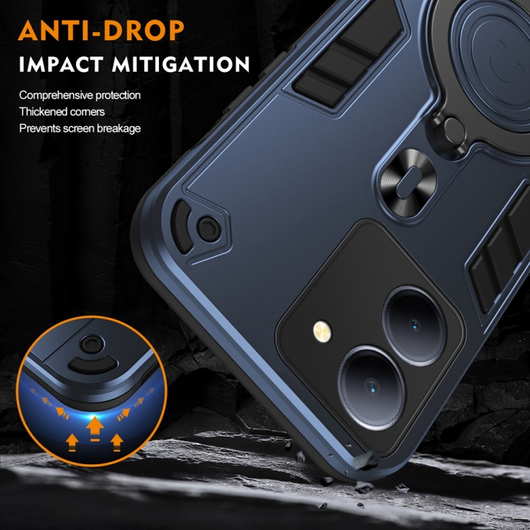 Para Vivo Y36 5G Anillo de Metal Soporte Giratorio de 360 Grados Caja Híbrida para Teléfono de TPU para PC (Azul Marino)